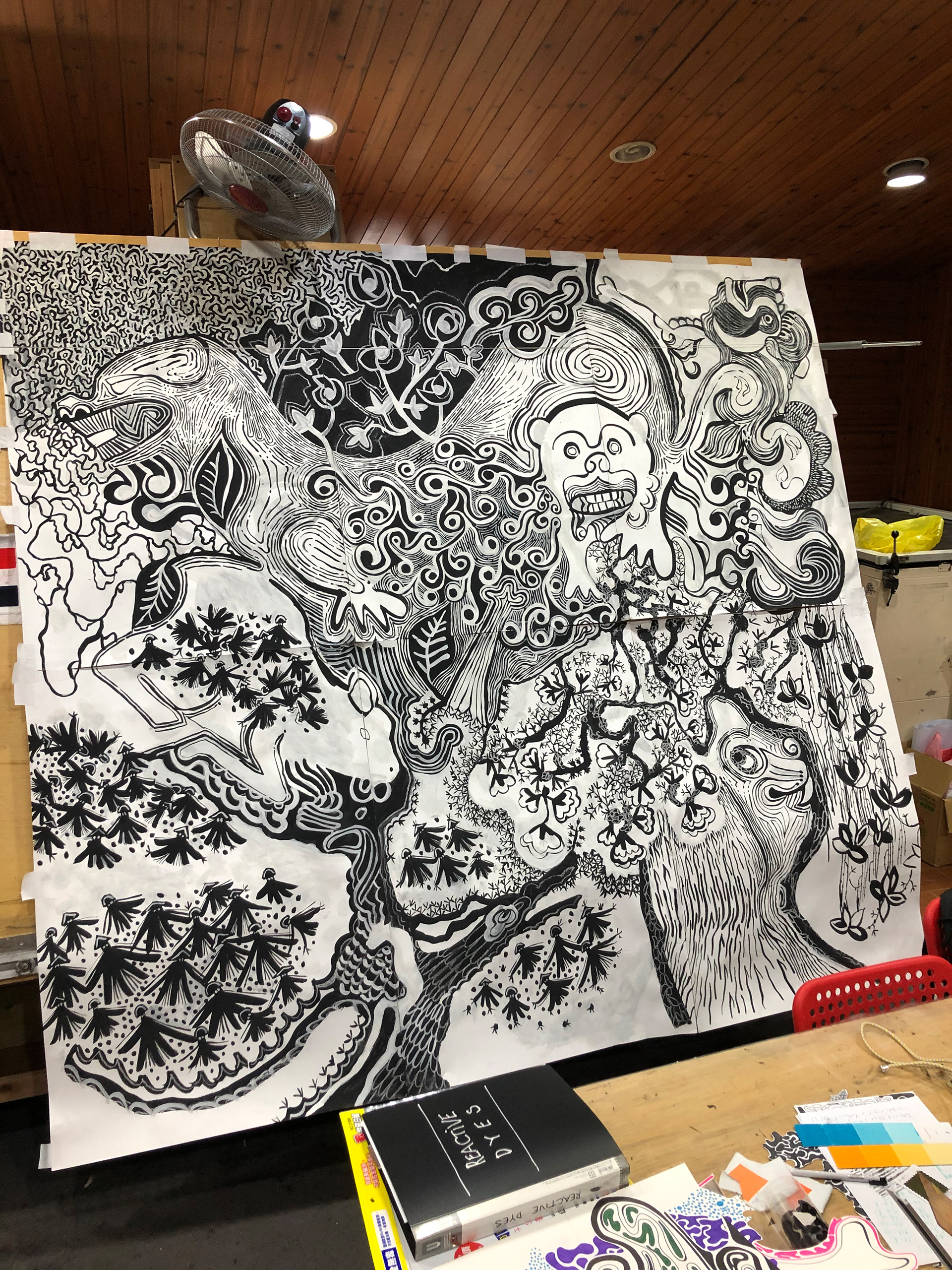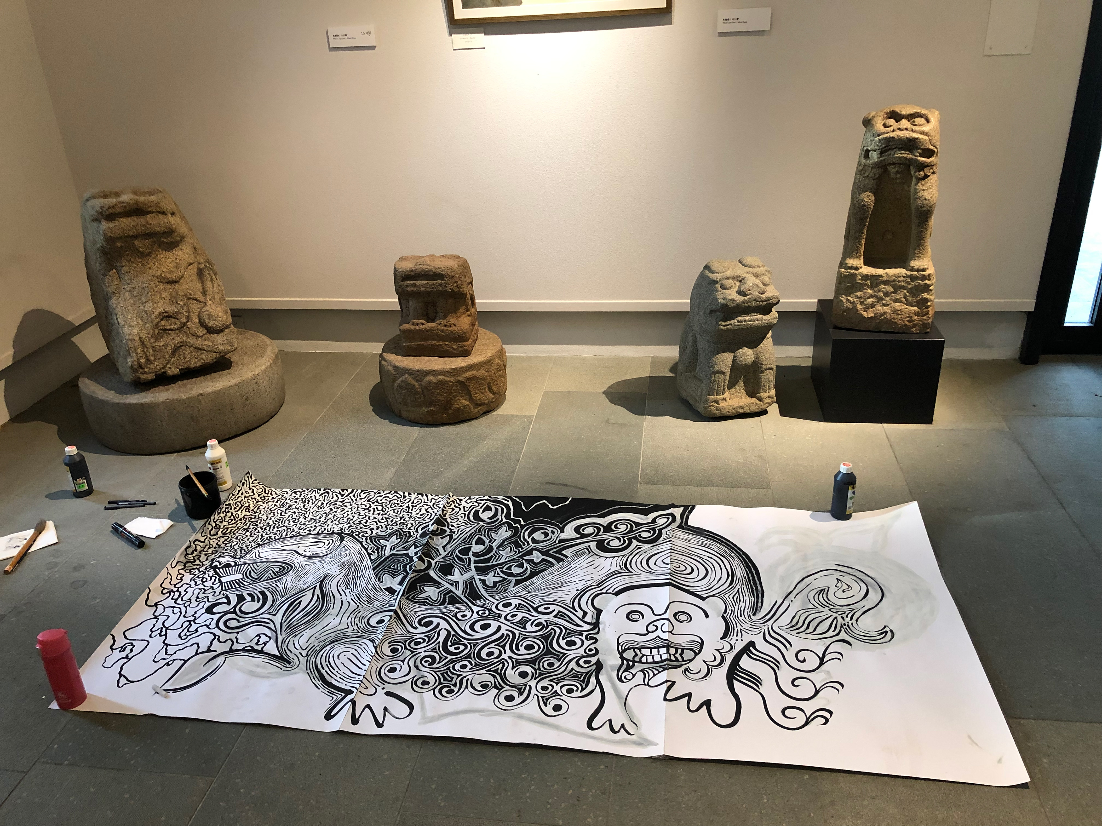 Sketches of an ongoing project for a panel/pattern design, inspired by an open air garden-museum of Chinese ancient sculptures in Taipei, Taiwan
