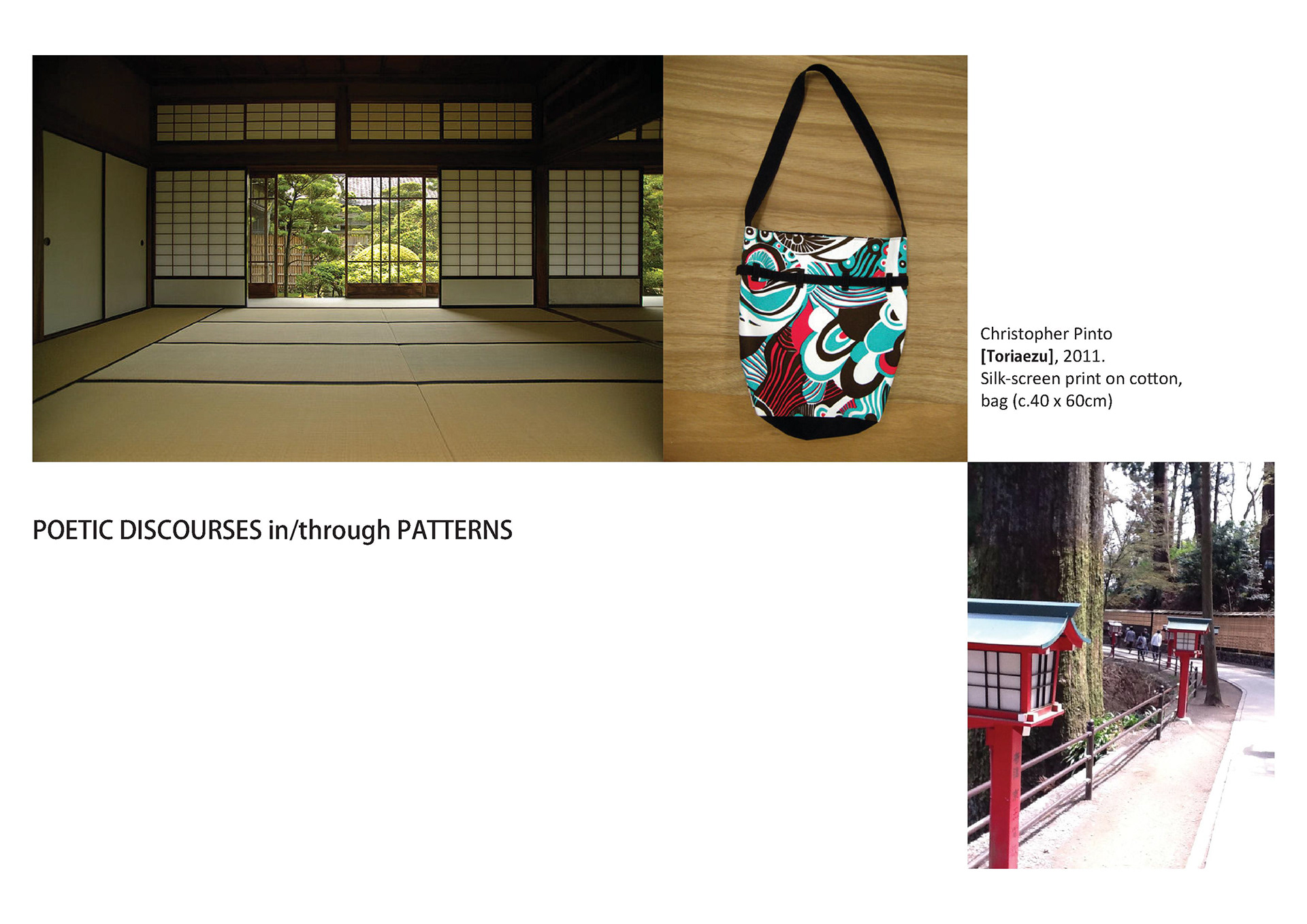 The objective of my PhD thesis was to investigate my personal modes of creating narratives for print textile pattern design as a means of creating an awareness of the poetic dialogues that patterns play in space. Poetically, I regard textile pattern design as analogous to Nature, in which patterns are portable landscapes that allow us to trigger our imagination and use it to cover the different surfaces of the objects and spaces surrounding us.